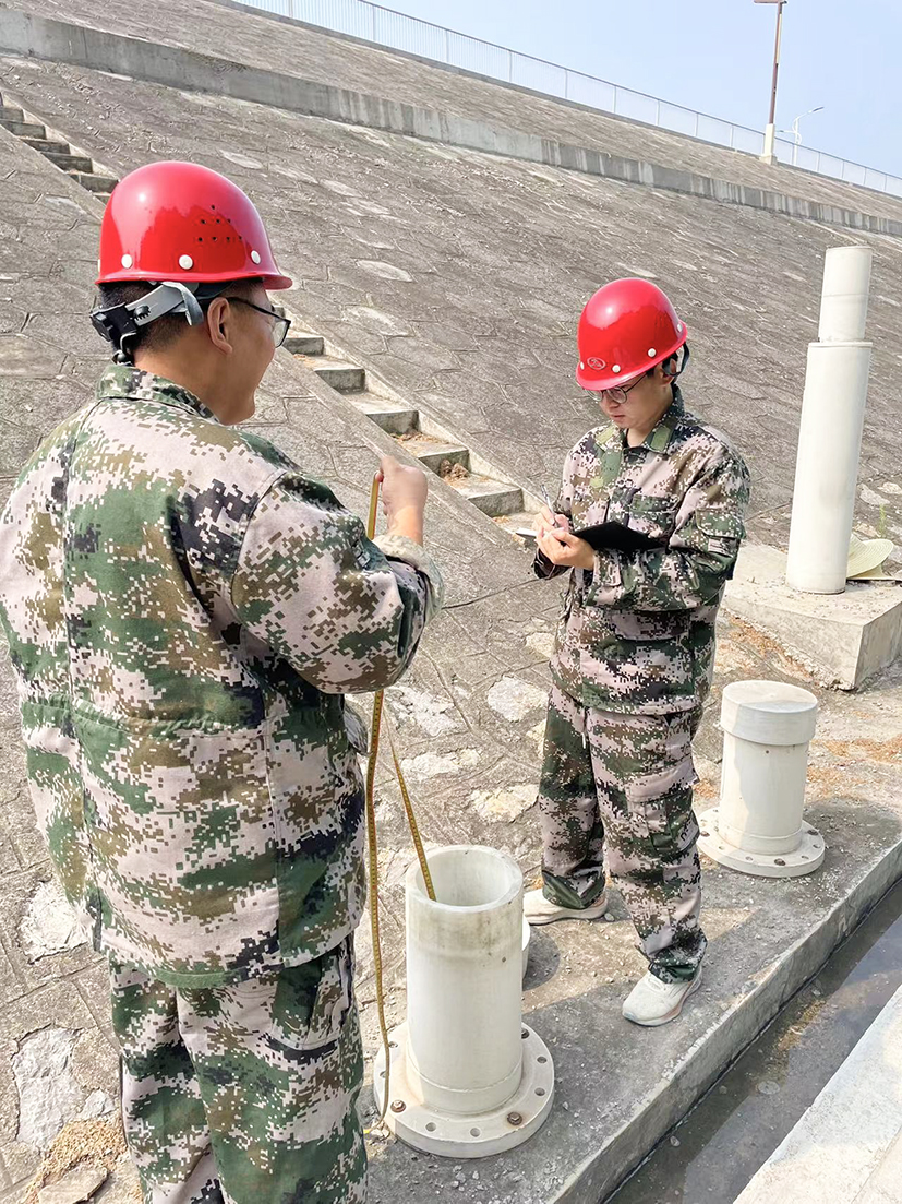 ▲進行滲流人工比測,并對滲流自動觀測設備進行維修養護