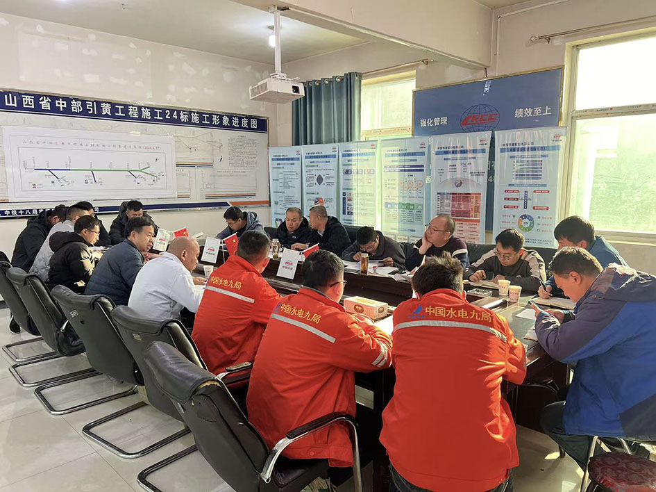 ▲在施工24標項目部召開超前預注漿堵水工藝優化專題會