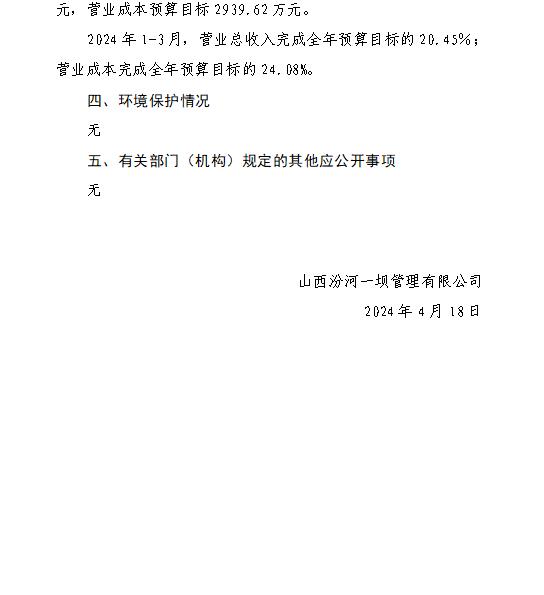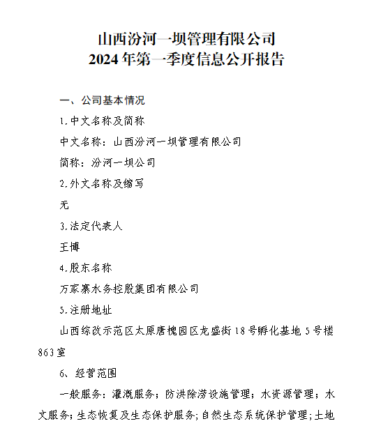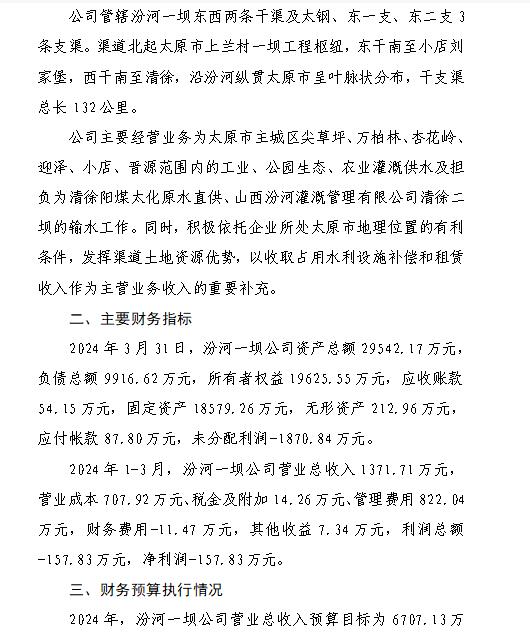 山西小浪底引黃水務(wù)集團(tuán)有限公司2024年第一季度信...