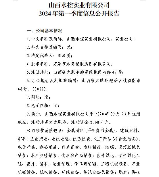 山西小浪底引黃水務集團有限公司2024年第一季度信...