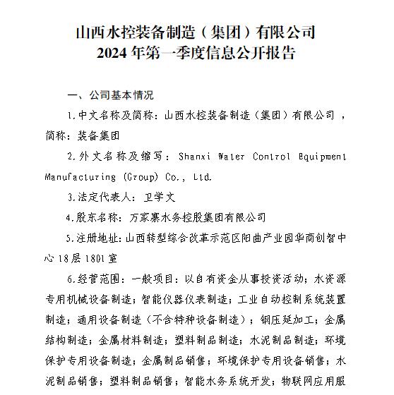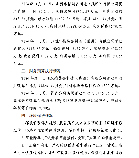 山西汾河灌溉管理有限公司2024年第一季度財務等重...