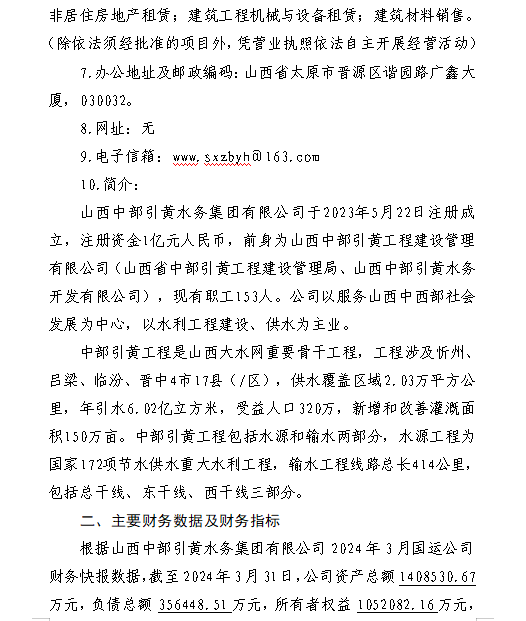 山西汾河灌溉管理有限公司2023年度財務(wù)等重大信息...