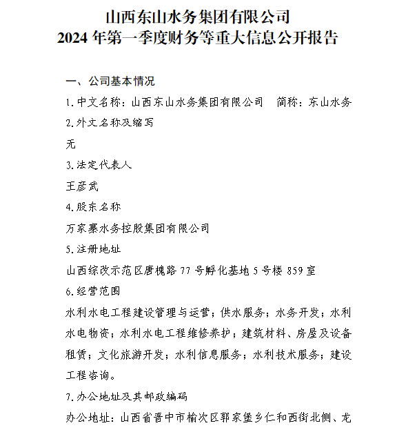 山西汾河流域管理有限公司2024年第一季度財務等重...