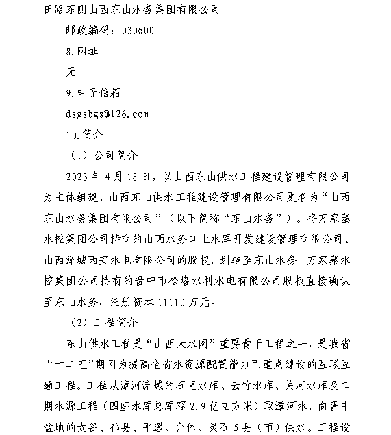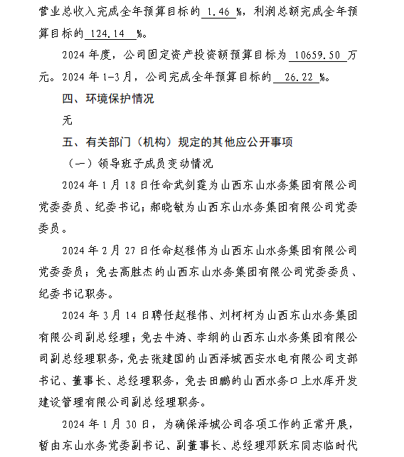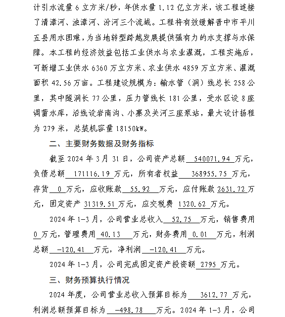 山西中部引黃水務集團有限公司2024年第一季度信息...