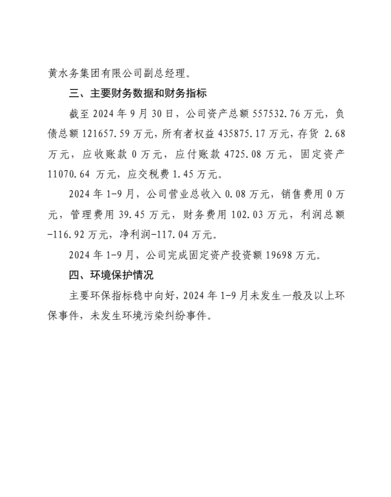 山西萬家寨水控工程投資有限公司2024年第三季度信...