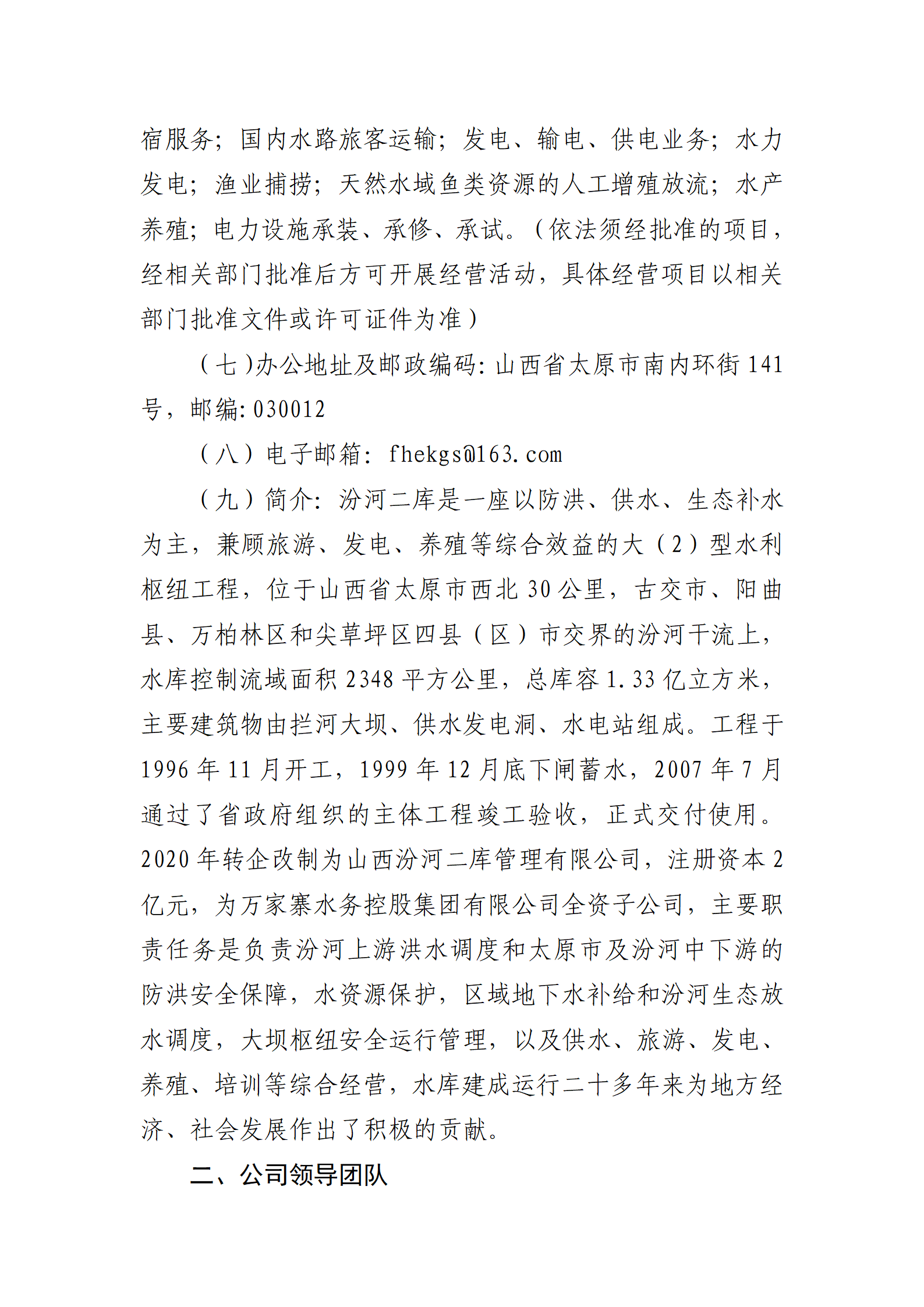 山西汾河二庫(kù)管理有限公司