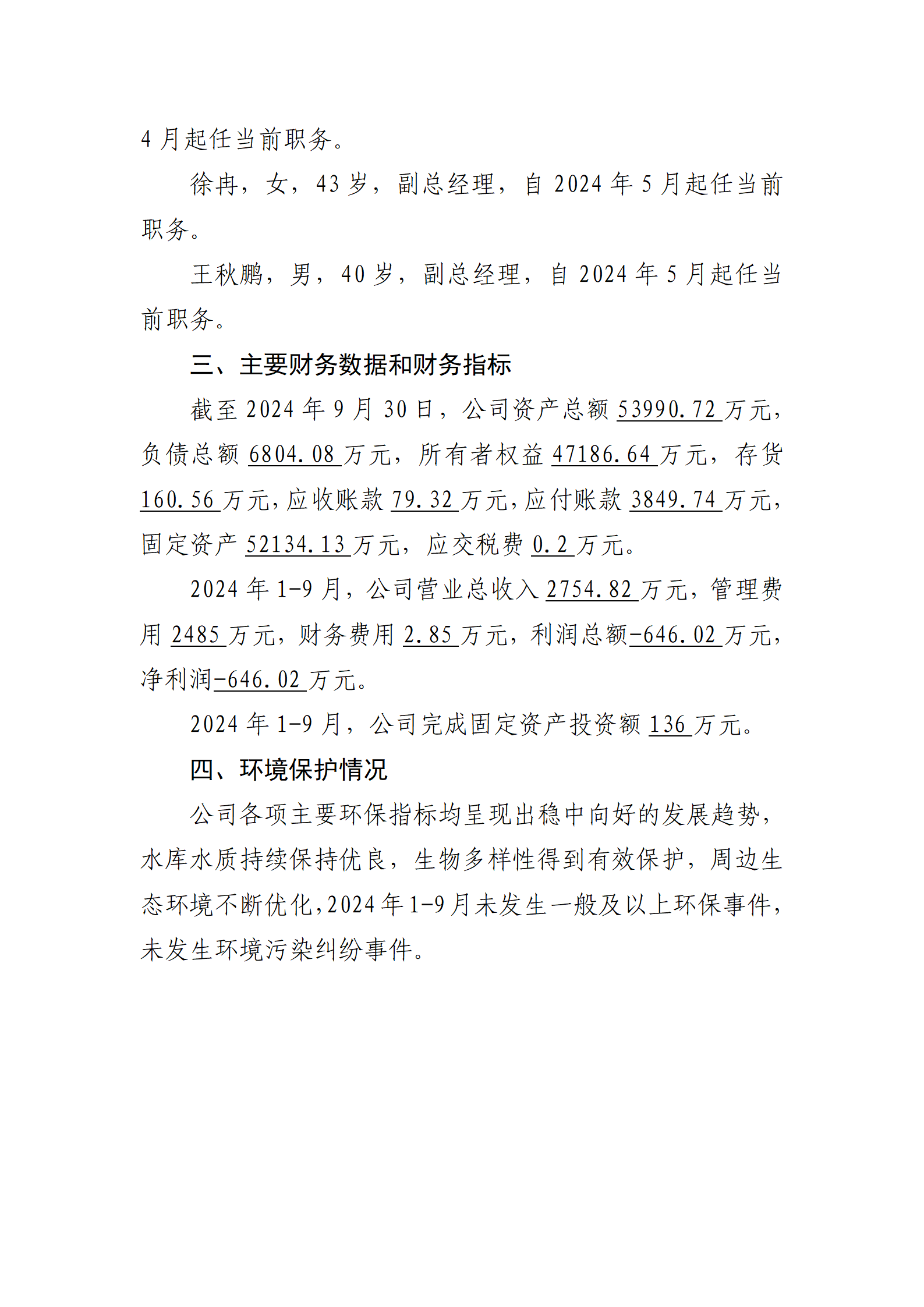 山西水務集團建設投資有限公司2024年第三季度信息...