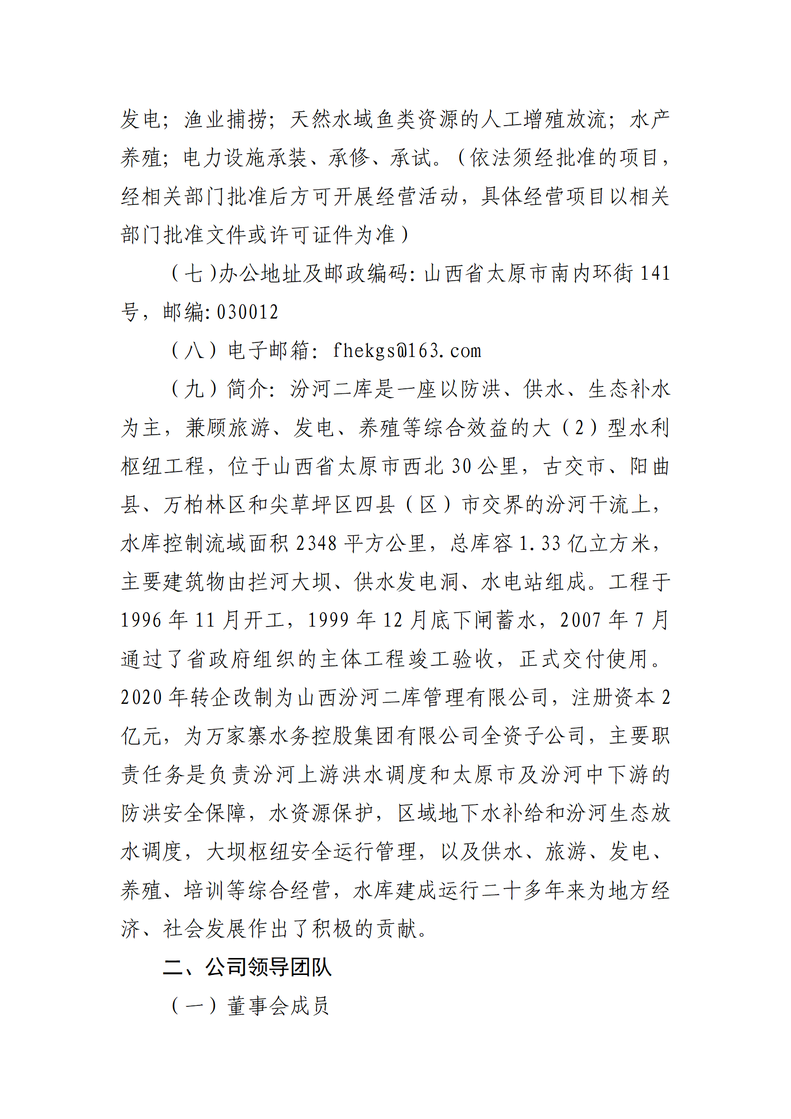 山西汾河二庫管理有限公司