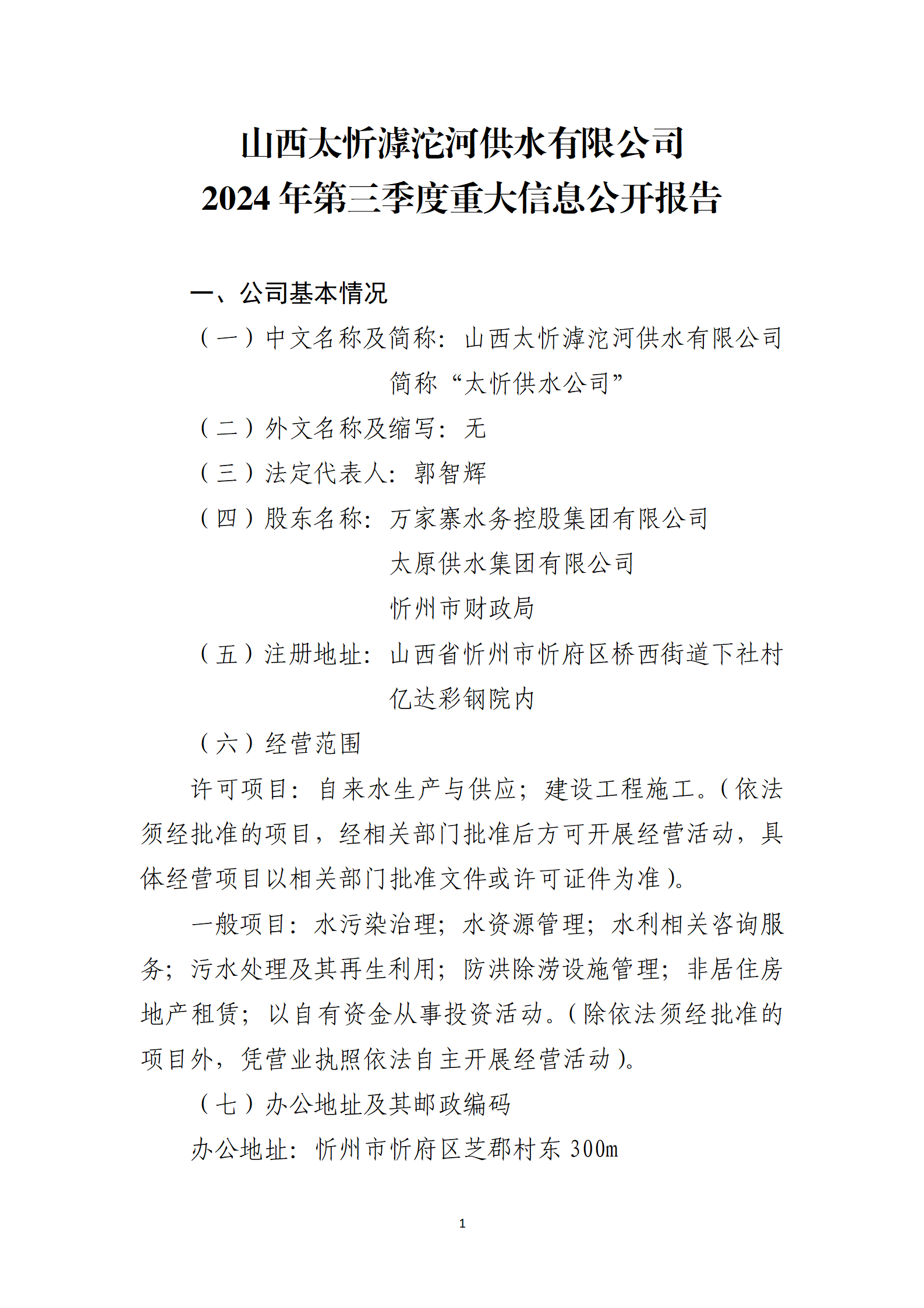 山西水務(wù)集團(tuán)建設(shè)投資有限公司2024年第三季度信息...