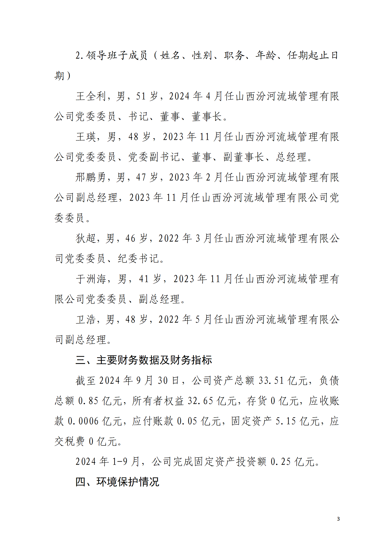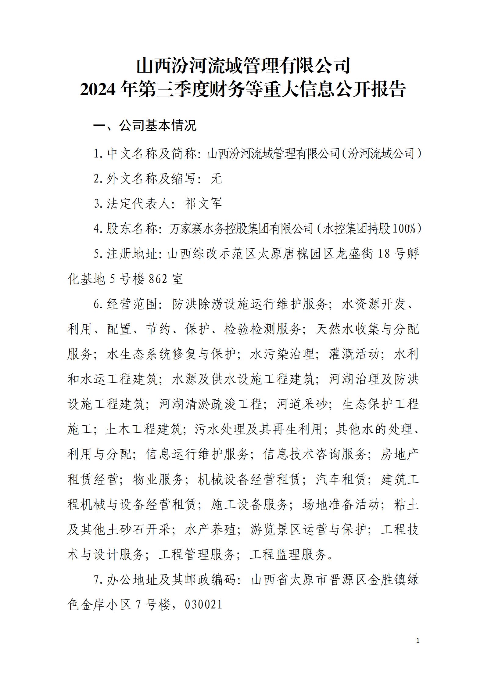 山西中部引黃水務集團有限公司2024年第三季度信息...