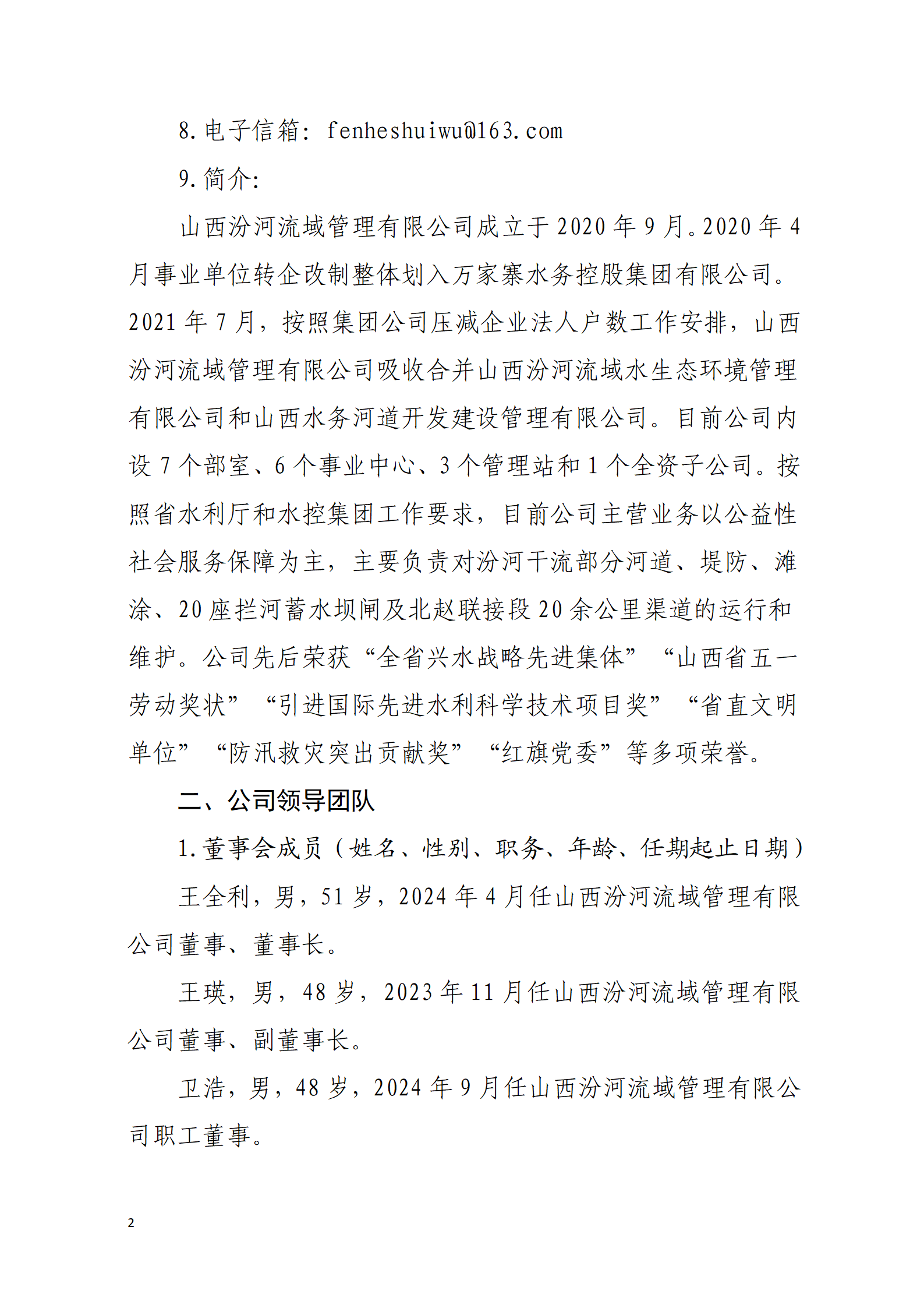 山西沁河水務集團有限公司2024年中期信息公開報告