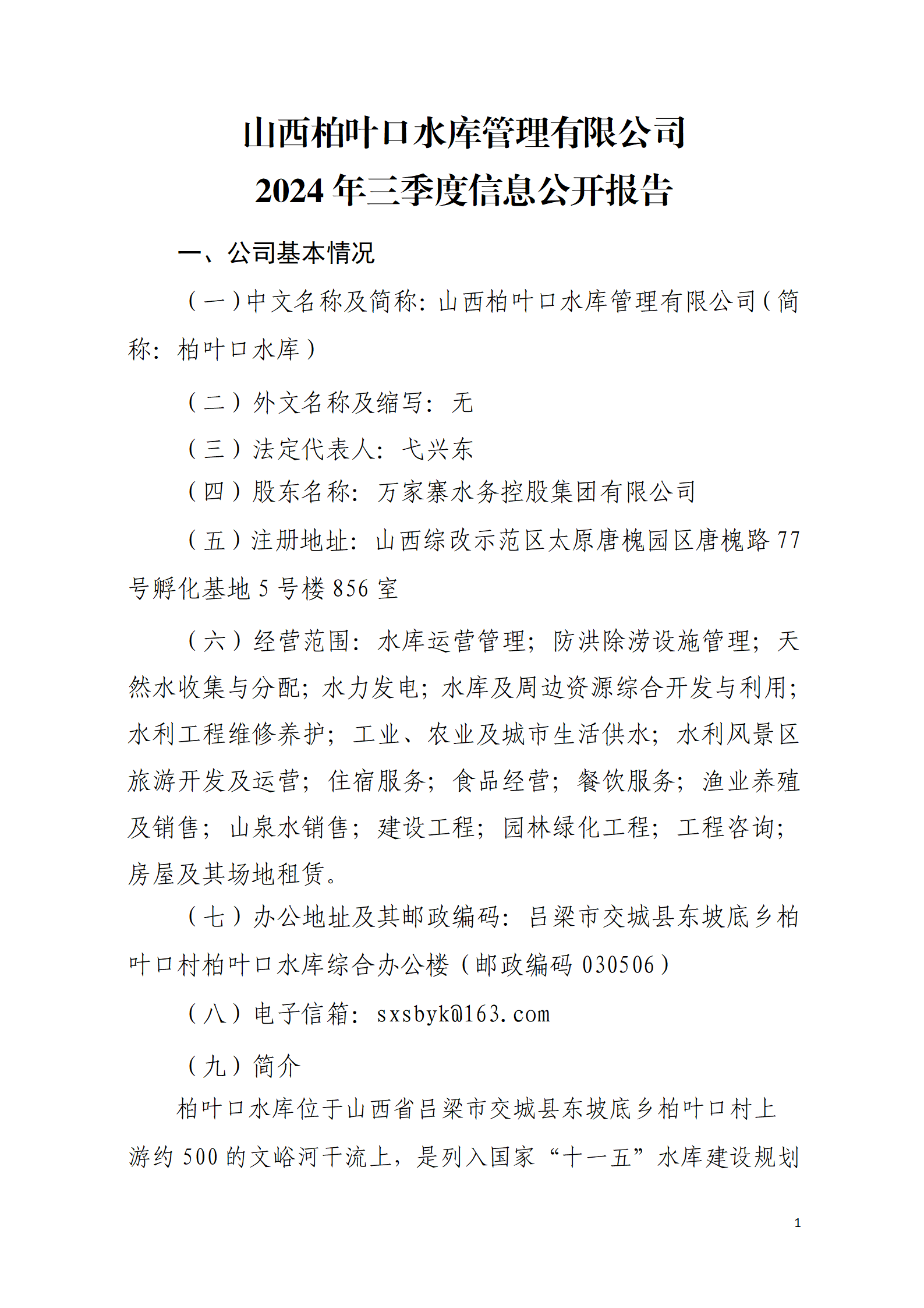 山西水資源研究所有限公司2024年第三季度信息公開...