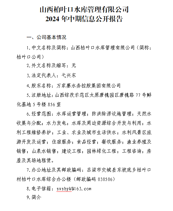 山西柏葉口水庫管理有限公司