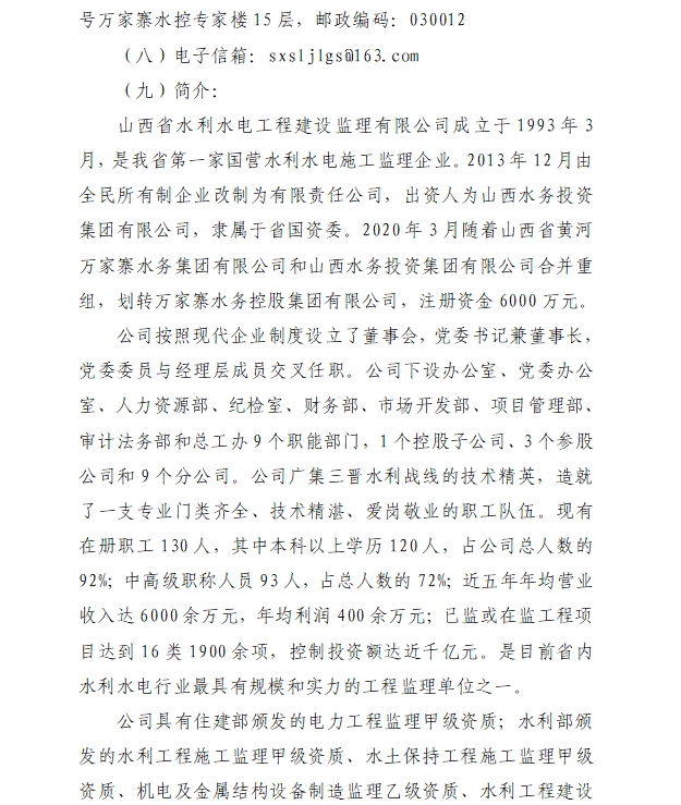 山西省水利水電工程建設監(jiān)理有限公司