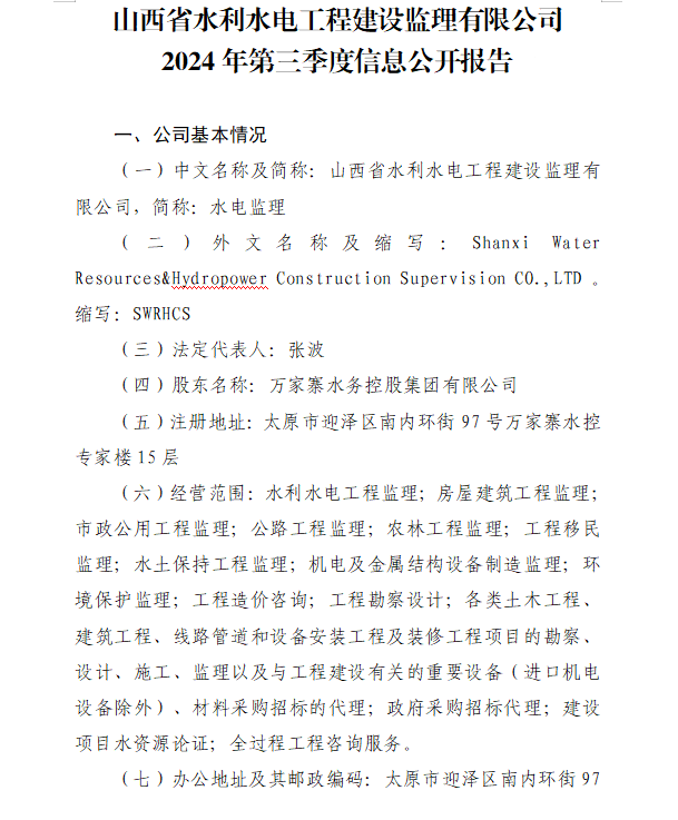 山西水利建設開發(fā)咨詢有限公司2024年第三季度信息...