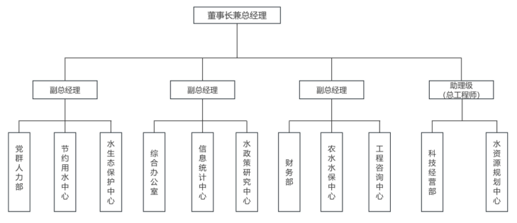 根據集團批復的“六定”方案,公司批復企業負責人4 人(已配備1正3副),助理級干部1人(已配備總工程師),中層管理人員11正11副(已配備11正11副),內設行政部室4個,業務中心部門7個。組織架構見下圖。