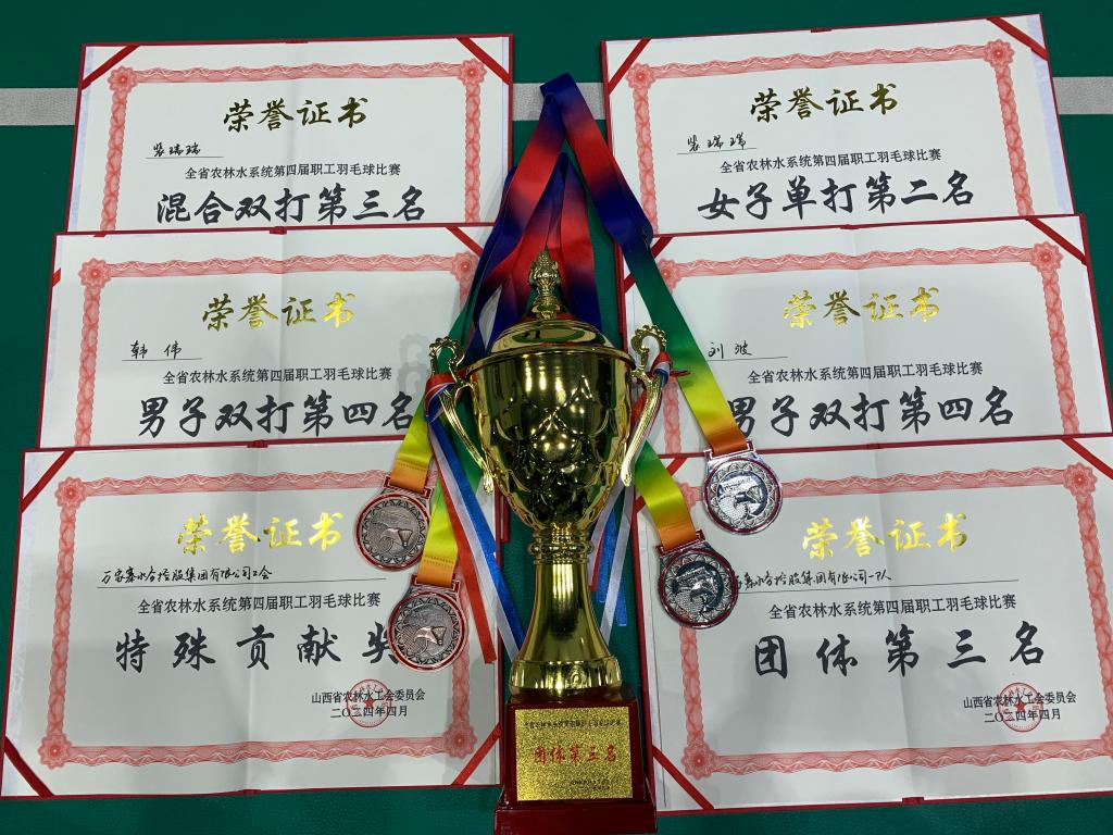 經(jīng)過激烈角逐,集團公司榮獲羽毛球團體第三名,女子單打第二名、第四名,女子雙打第三名,男子雙打第二名、第四名,混合雙打第三名的優(yōu)異成績。在牌類比賽中,獲得領(lǐng)導組第一名、第三名,職工組第四名、第九名,團體總成績第三名的好成績。集團公司榮獲比賽特殊貢獻獎。