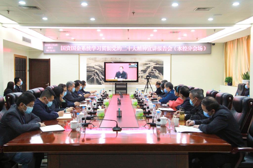 萬家寨水務控股集團黨委高度重視,精心組織,集團黨委班子成員馮志君、蘭康杰、曹池、常建忠、彭柏青,總會計師曹志剛,總法律顧問馬愛龍,副總工程師,首席專家,集團公司部室、中心主要負責人,駐并青年理論宣講隊成員在水控集團分會場通過視頻收聽收看宣講報告會。
